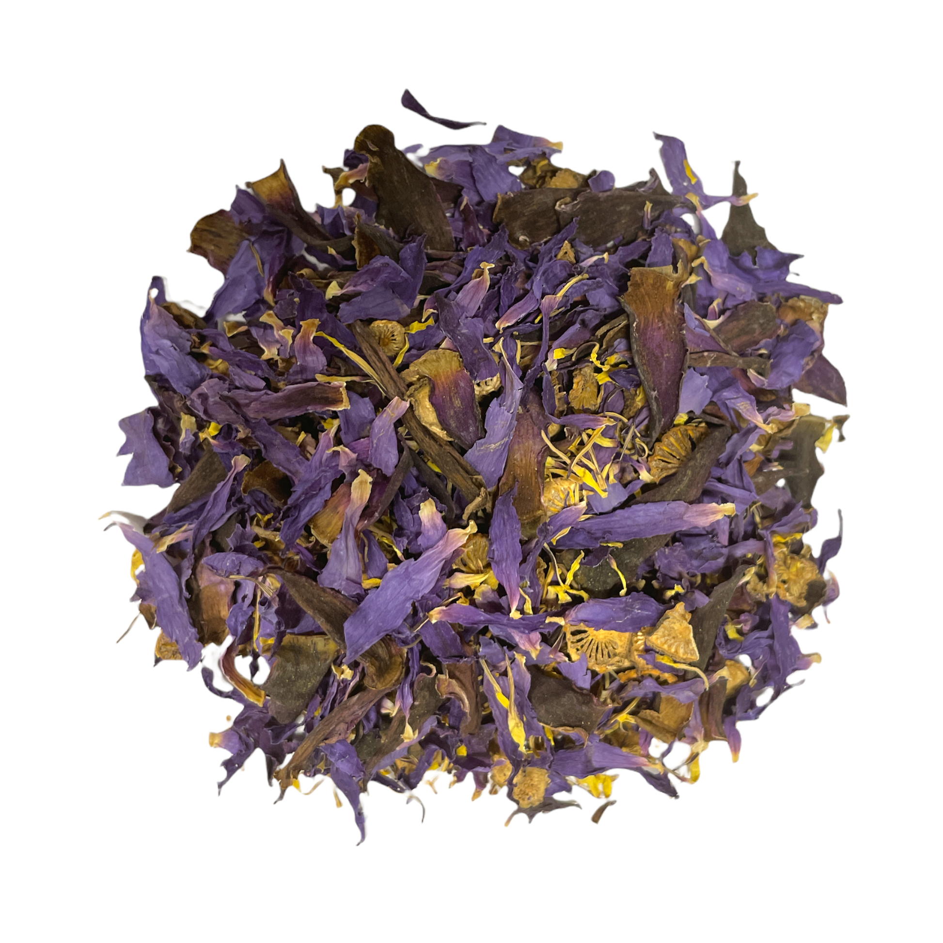 Blue Lotus is noted for its calming euphoria, aphrodisiac qualities and sedation properties. It can used as a sleep aid as a natural anti-anxiety remedy & as a stress reliever.*The flower petals and leaves are typically made into a tea for internal and external use. Petals are Steeped in wine or tea to have a calming effect.*
