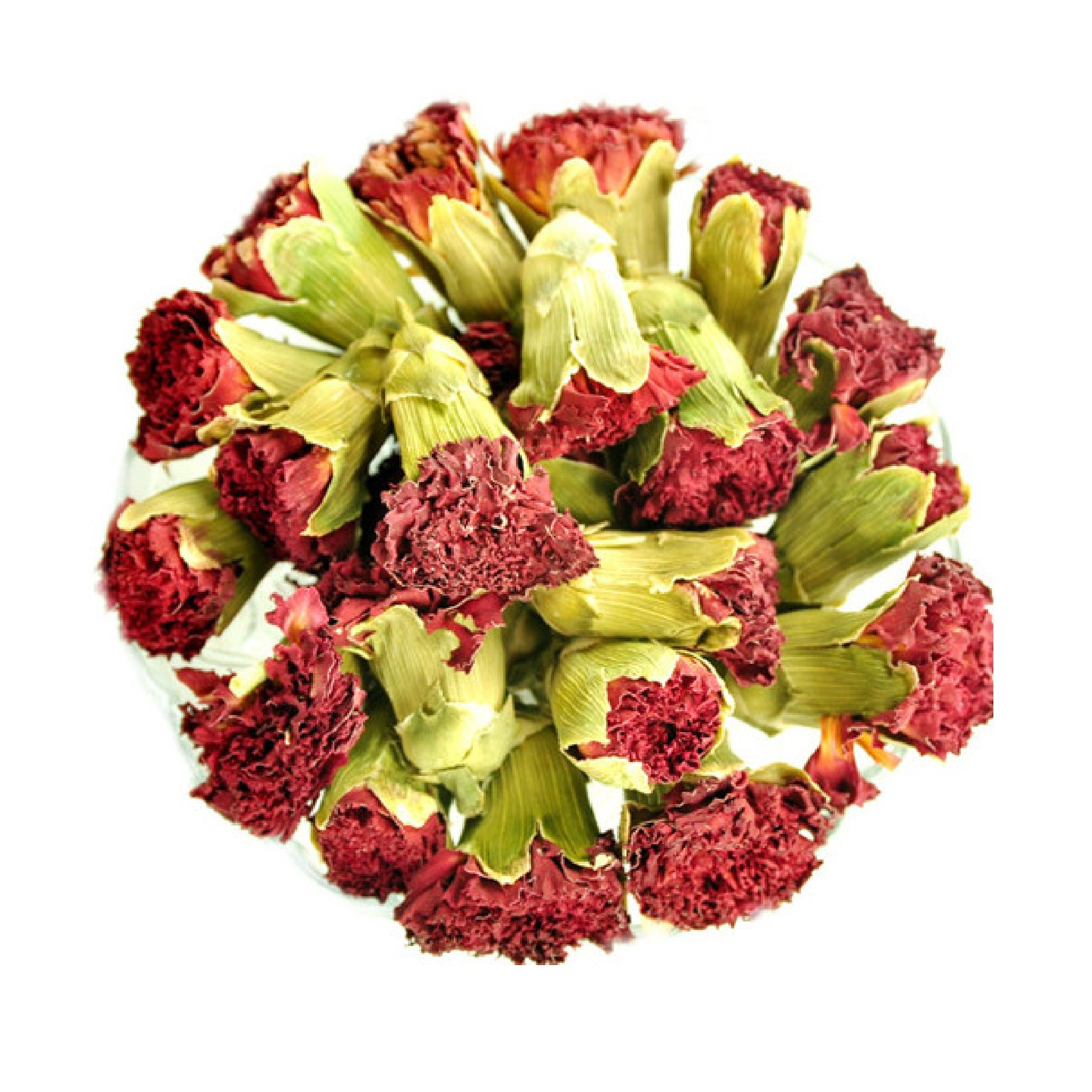 The aroma of Carnation flower is rich and refreshing, the taste is smooth with a long-lasting fragrance. This dried carnation flower tea is widely used for relaxing, to help restore the energy of the body, to improve blood circulation, and strengthens metabolism. It could clear the throat & nourish the lung.*
