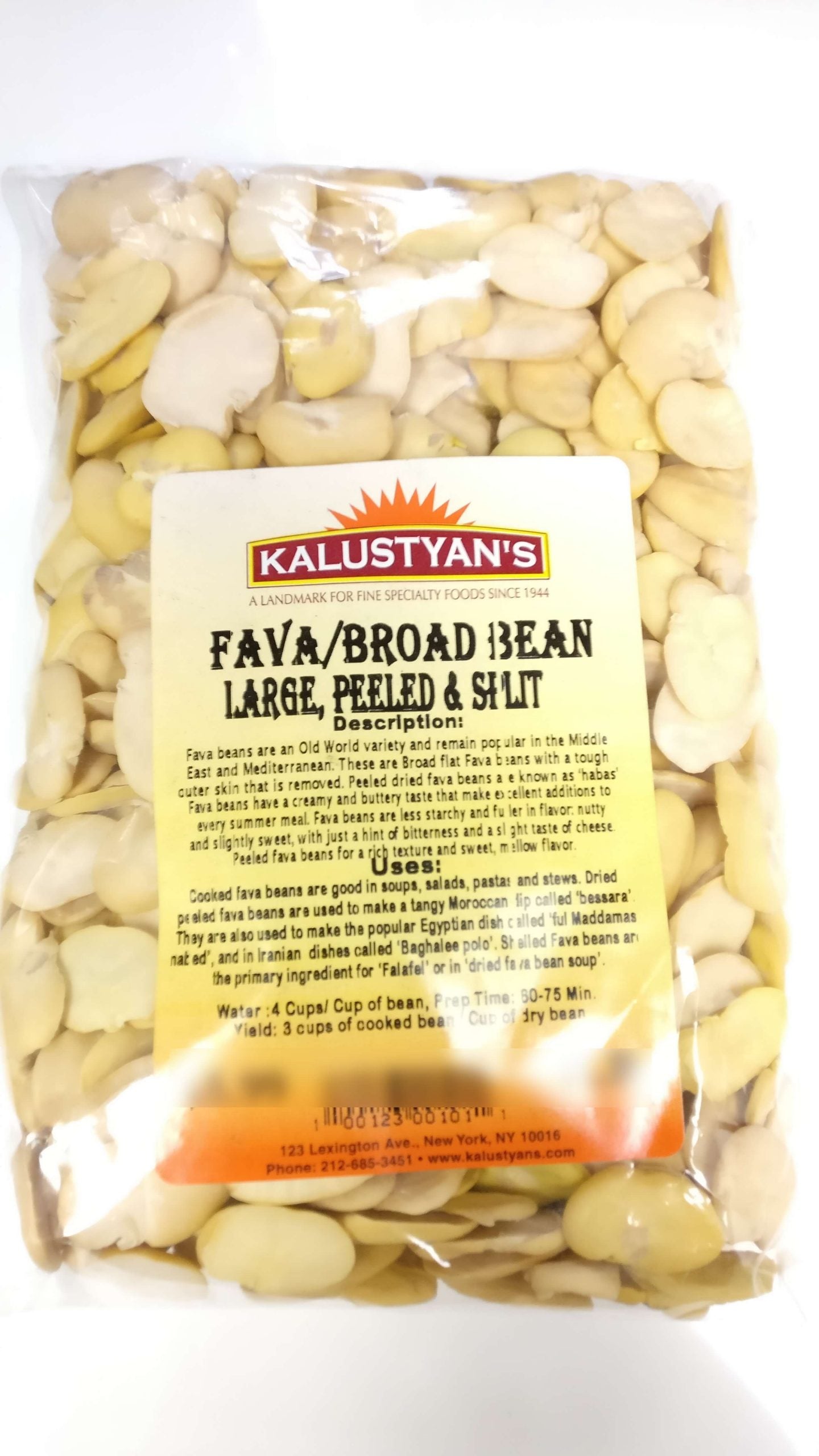 Peeled & Split fava beans (habas) are dried Fava / Broad beans with its outer skin removed, and have a creamy pale yellow color. When cooked it has bold, earthy flavor, creamy texture and buttery taste. Popular to use in soups, dips to sauces, salads, pasta dishes and stews.