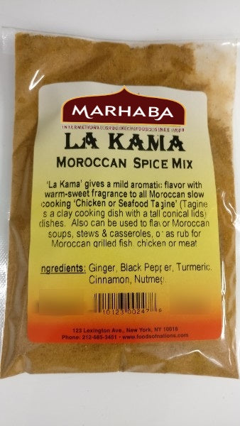 Heat tagine on the stove on a medium heat, 1tbsp olive oil, stir fry 2 diced onion and 3 cloves chopped garlic until soft. Add 3tbsp La Kama spice and mix well, may add water if spices are sticking to the bottom. Add 8-10 cleaned chicken thighs, stir gently to coat with the spice mix (5 min.) Add 2 cups fresh chopped tomatoes, 3tbsp tomato paste, 1tbsp brown sugar and ½ cup chicken stock. Stir well, bring to the boil, simmer, cover and cook for 20 minutes, stir occasionally. Add some diced carrots and diced zucchini, stir, add ½ pc Moroccan preserved lemon. Put the lid back and cook for a 25-30 minutes or until chicken is tender. Garnish with 2tbsp chopped parsley & coriander, check and add salt and pepper if required. Serve hot on the top of couscous dish.