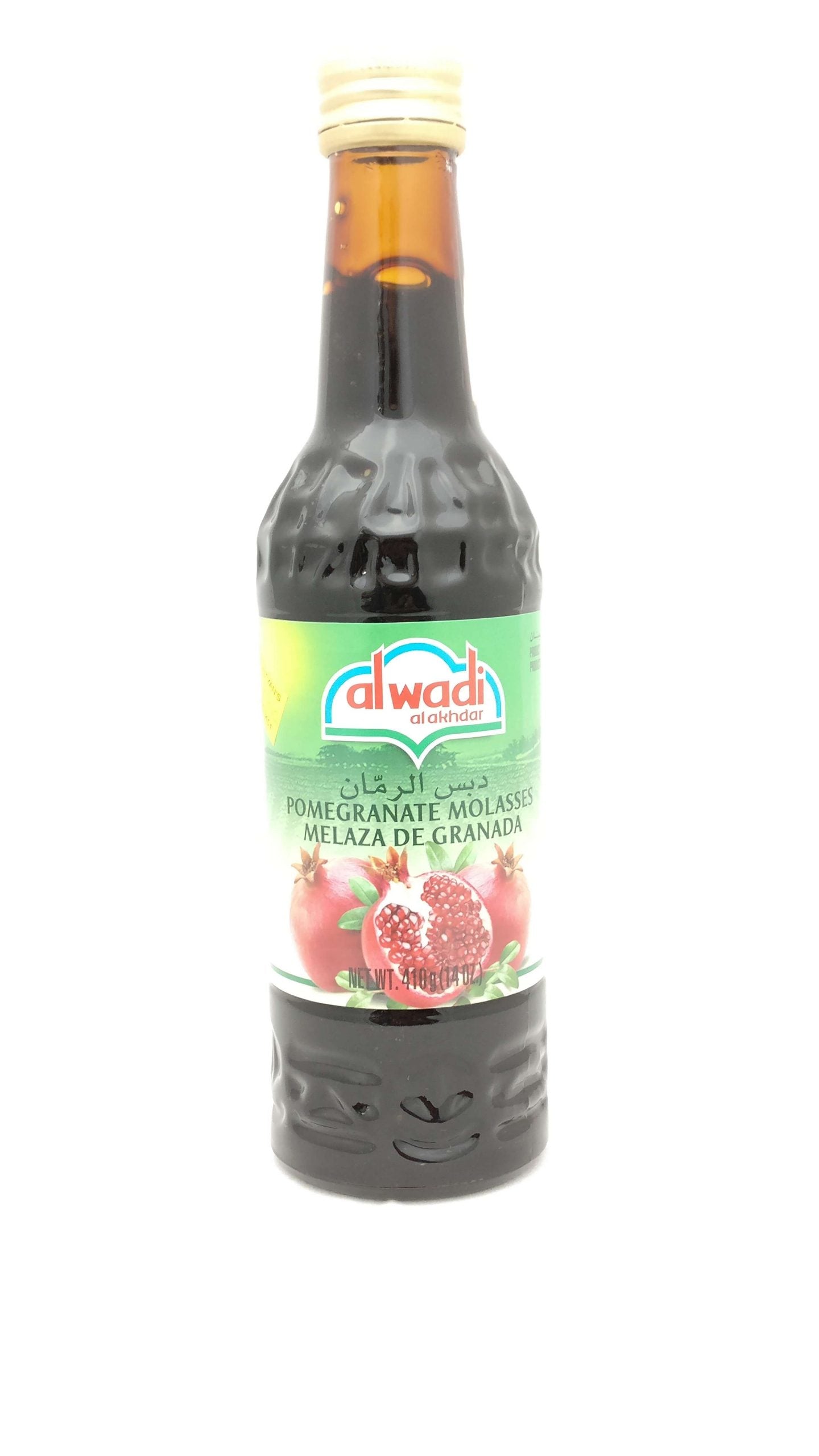 Pomegranate molasses is made by cooking pomegranate juice until it reduces into a deep reddish-brown syrup that is thick, tart, and slightly sweet. It is an important ingredient in Middle Eastern cuisine in general, and in Persian cuisine in particular. Pomegranate molasses is made by cooking pomegranate juice until it reduces into a deep reddish-brown syrup that is thick, tart, and slightly sweet. It is an important ingredient in Middle Eastern cuisine in general, and in Persian cuisine in particular. Al Wadi Pomegranate molasses (also called syrup), with its fragrant, heady aroma and rich, dark red color adds a tart pungent flavor to so many dishes