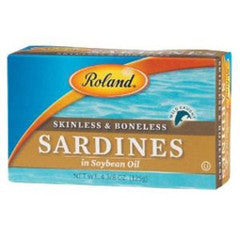 Skinless & Boneless Sardines in Soybean Oil. Net Wt. 4 3/8 oz. (125g)
