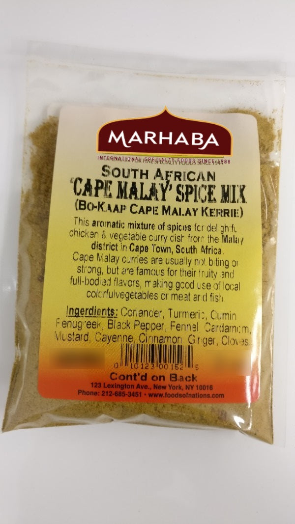 This aromatic mixture of spices for delightful chicken and vegetable curry dish from the Malay district in Cape Town, South Africa.